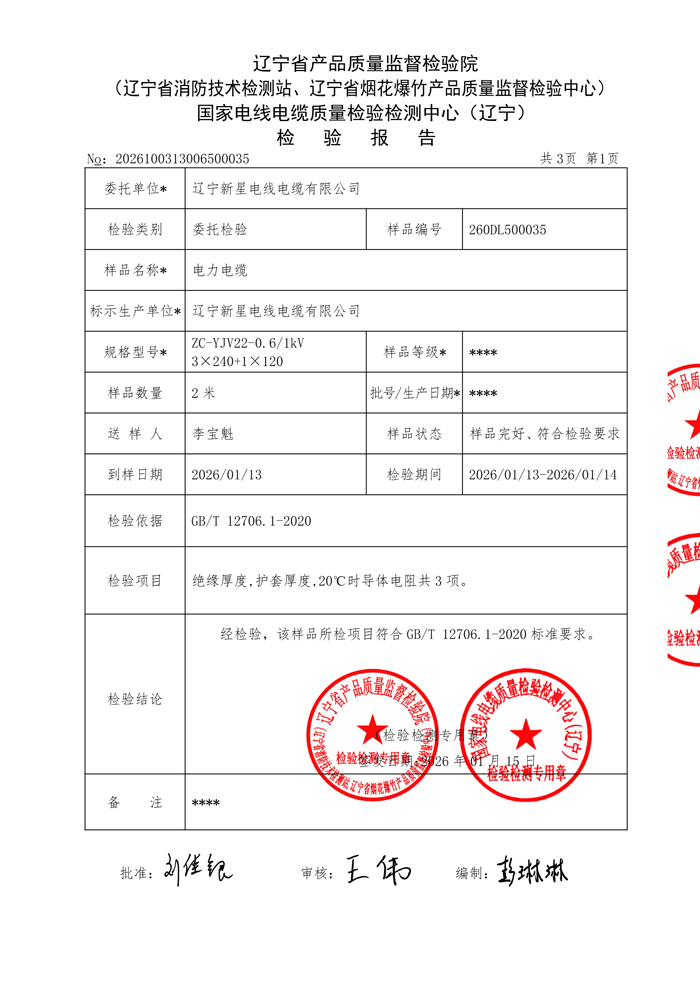 ZCYJV22检验报告